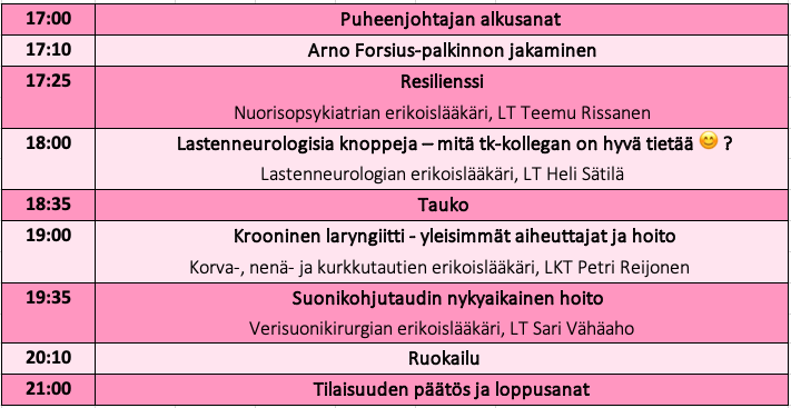 Seura järjestää jälleen kaikille Päijät-Hämäläisille lääkäreille avoimen, maksuttoman virtuaalisen koulutustilaisuuden keskiviikkona 27.1.2021 klo 17:00-21:00. Päivien omat sivut tästä.